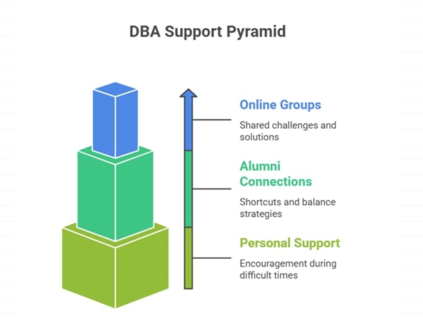 - Balancing a full-time job and a DBA feels easier when you do not carry everything alone. Create a circle of support that helps you stay motivated and accountable.